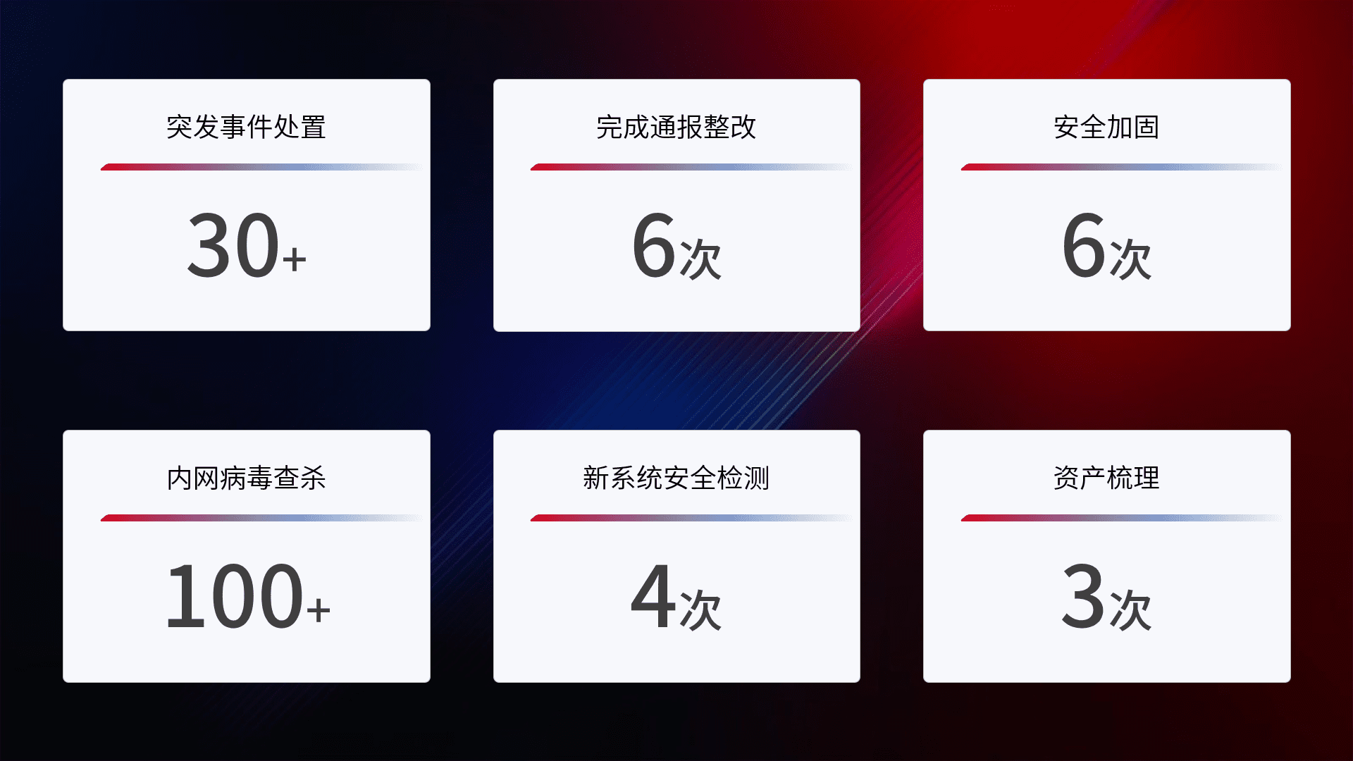 网络安全加固与风险管理:通过技术加固手段,,,如加强区域隔离,,,缩减攻击内网横向移动的范围;优化现有网络安全管理制度,,,降低网络威胁暴露面,,减少被黑客攻击的可能性。。